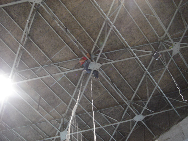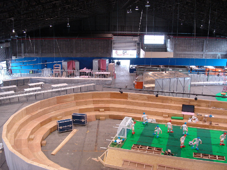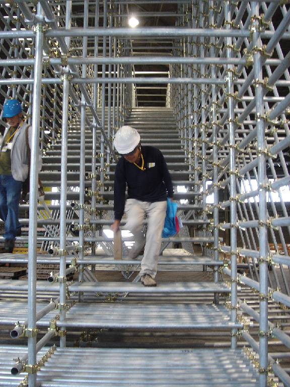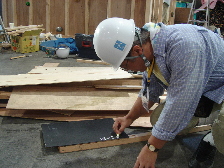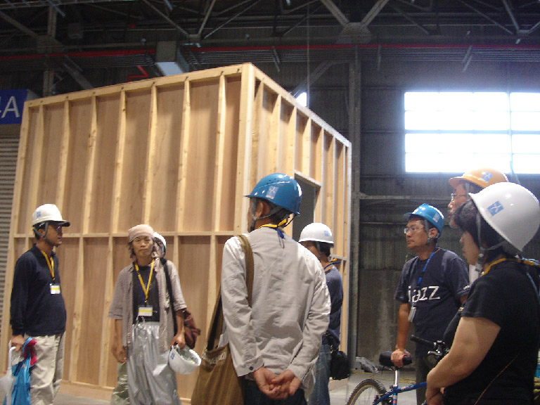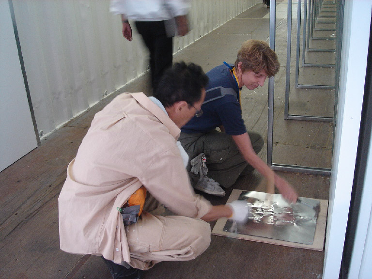この日に堀尾さんと空気メンバーは現地集合です。搬入作業開始の初日。ディレクターの川俣さんの説明を聞きながら