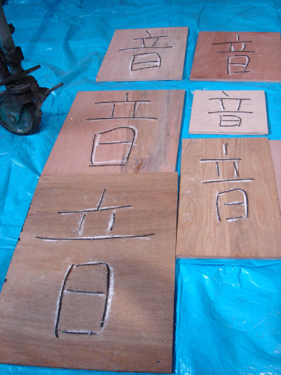 パフォーマンス「音をだして音を出す」の音パネルづくり。下駄づくりや100均絵画の準備をしました。