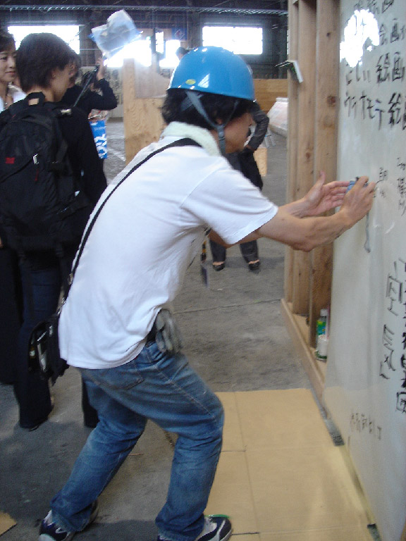 会場内をまわりました。私たちは「作品の搬入」というよりは、毎日やる壁塗り・パフォーマンスの準備が中心です。