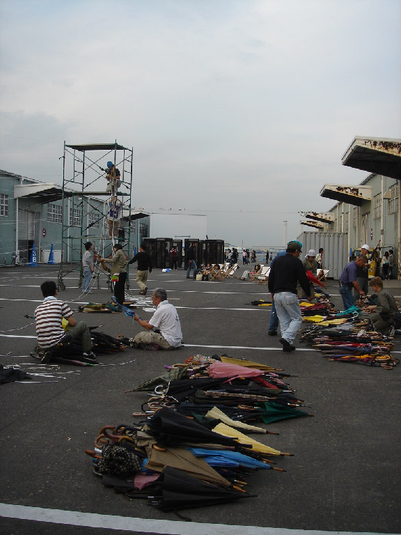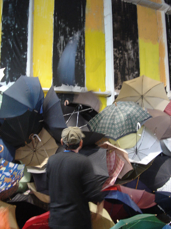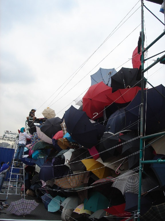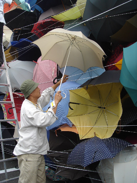 その中に傘をひらいて投げ込んでいく「四角い花」を作りました。あっという間にあの巨大な作品が出現して、