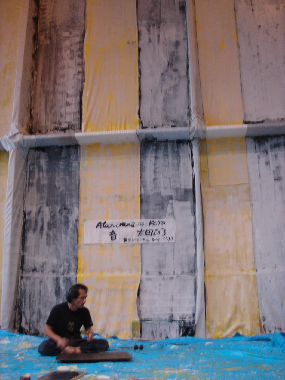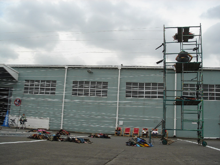 音を出しながら、「音」という字を出すというパフォーマンスをやりました。最後にはナカニワで足場の間に紐を張り、