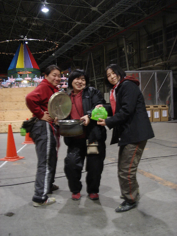 朝食の時に堀尾さんに「もっといっぱい作ってくれ〜」と。午前中は再び衣装づくりでした。今晩は今まで手伝ってくれた