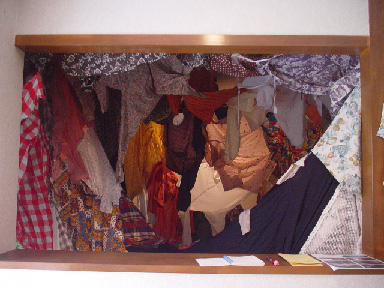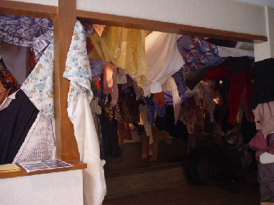 展示しました。タイトルは「洗い屋商店」。1Fの天井や壁に古着を貼り付けました。