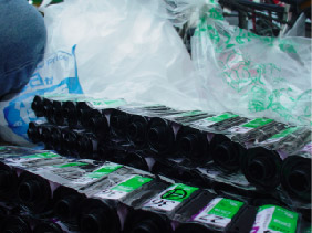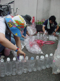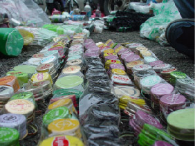 この青空美術場の会場となる駅前商店街・銀座商店会を中心にチラシで素材のご提供を呼びかけて回収し、