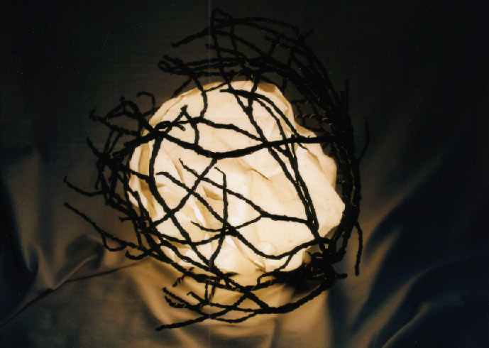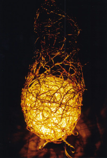 金属という光を反射する素材と、ワイヤーという光が洩れるような「線」を使うことにより