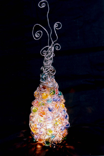 そこにガラス玉を組み合わせて光を透過させたりいろんな空間ができました。