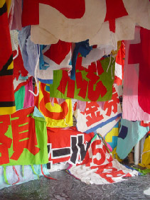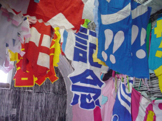 横断幕をもらって1人50着、2人で100着の服をつくりました。